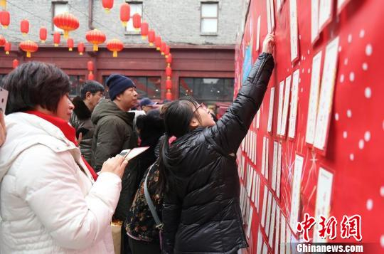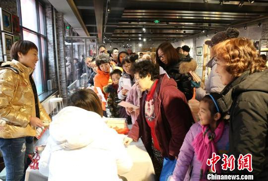 在民俗展示墙前,群众和游客驻足观看,讲述东北元宵节民俗的展板,就像一幅幅徐徐展开的画卷,以图文并茂的形式,向驻足参观的群众讲述东北元宵节的风俗习惯。猜灯谜是元宵节必不可少的一项游戏,在灯谜墙前,站满了男女老少,他们有的在专心致志的思考,有的在互相探讨,有猜中的就欢天喜地的拿着谜面去兑奖,领取装满礼物的“送福袋”。因为谜语能启迪智慧又饶有兴趣,所以深受现场群众的欢迎。道外区民间艺人、手工编织大师公玉梅老师现场免费教授编“中国结”、“新春元气手链”、“欲飞的蝴蝶”等手工编织作品,并将编好的“元气”手链送给过往的游客,也送上一年的美好祝福。