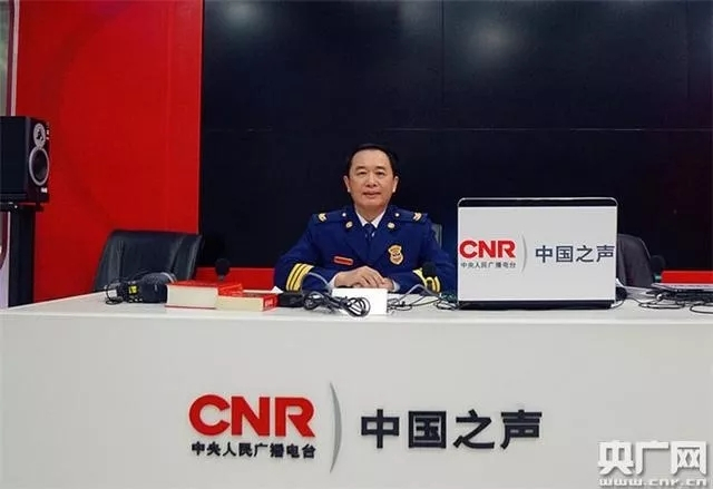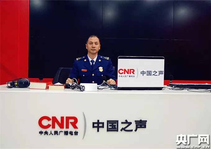 应急管理部消防救援局警务处副处长、一级指挥长刘国峰做客中国之声直播间(央广记者 柴婧 摄)