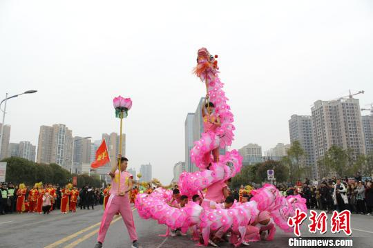 图为铜梁龙灯龙舞大巡游中的“荷花龙”表演。 王伟臣 摄