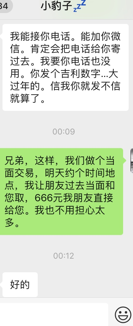 据小谢介绍,之后他和“小豹子”在电话中沟通得知,“小豹子”说的“吉利数字”是666元或者888元。经过一番沟通,小谢决定给“小豹子”666元。