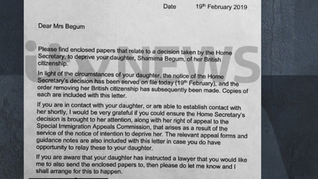 英国内政大臣贾维德(Sajid Javid)在2月17日声称“动用一切力量阻止她回国”,之后贝居姆的家人在2月19日收到了英国内政部取消贝居姆英国国籍的通知信。