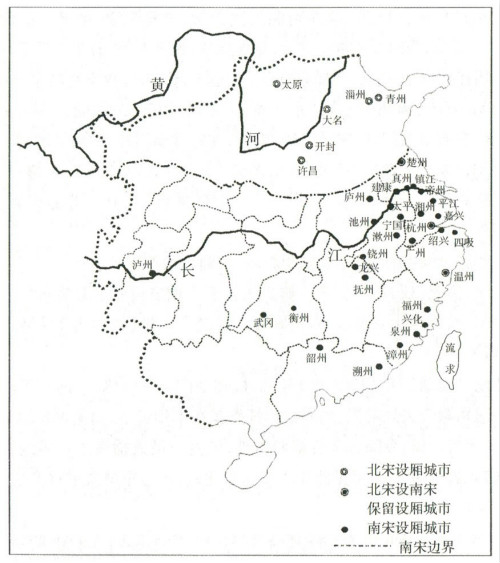 宋代全国设有厢的城市分布