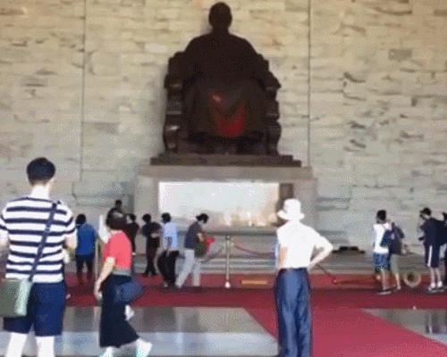 去年7月,5名“独派”激进分子前往中正纪念堂,朝蒋介石铜像丢含颜料的鸡蛋,随后又将整桶油漆泼向中正纪念堂外侧阶梯。