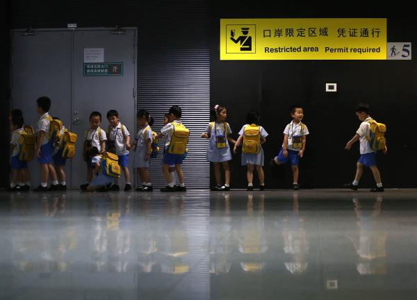 2013年6月25日,深圳福田口岸,放学的孩子们已通过香港边检,正在等待回到深圳境内。视觉中国 资料图