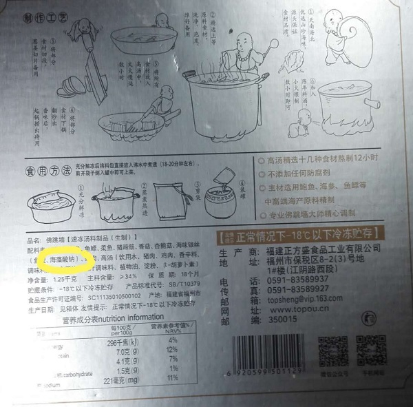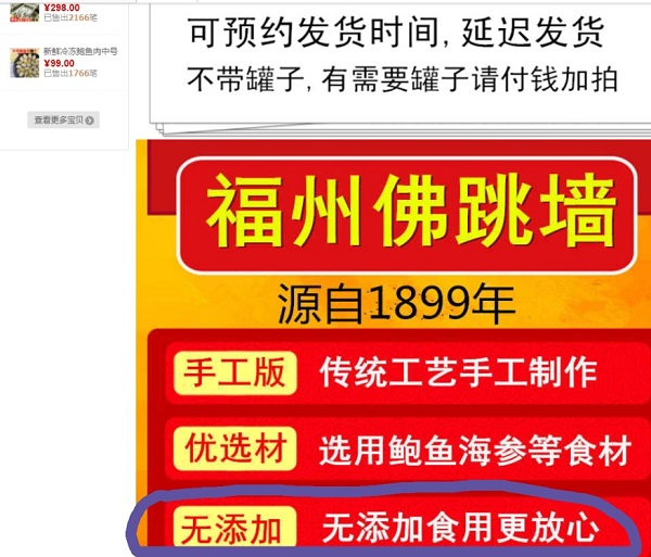 图说:宣称“无添加”的“佛跳墙”  来源/受访者供图