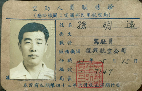 他的大哥孙明远,1951年后随他的老上级和老朋友传奇飞行员陈文宽,从国民党空军外调加入台湾复兴航空公司,承接国民党当局的军用、“外事”和商用、邮政等包机飞行,担任复兴航空总飞行师。孙氏兄弟在台湾的生活也逐渐稳定下来,一家其乐融融。