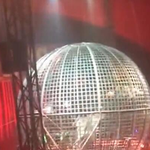 据英国《每日邮报》报道,这一事故发生在2月23日,当时表演的是有“英国最大马戏团”之称的甘迪斯马戏团(Gandeys)。从一段视频中可以看出,在笼中飞车表演伊始,3名表演者在一个被称为“死亡之笼”的、金属外壳的球体内驾驶摩托车高速行驶。但不久后,其中一名车手出现了失误,导致与2名伙伴相撞,3个人随后都跌落到笼子底部。看到这一幕,马戏团的工作人员急忙冲向笼子,而在播音员要求所有人离开场地前,还可以听到震惊的人群发出惊恐万分的声音。