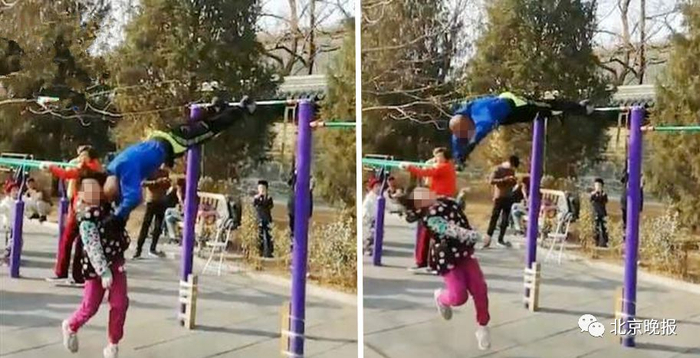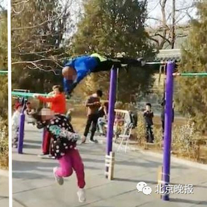 北京大爷单杠倒挂“大回环”撞飞女童,律师:撞人者责任最大