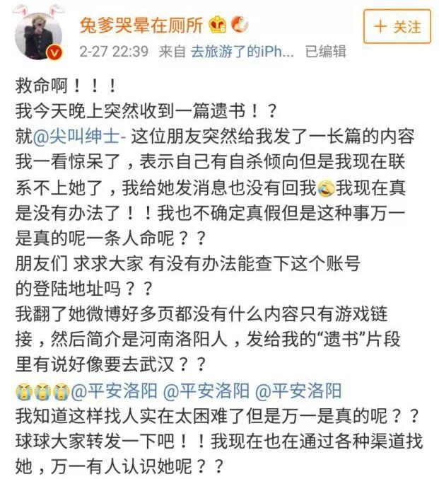 此前,也有其他网友发微博称自杀,引发关注。