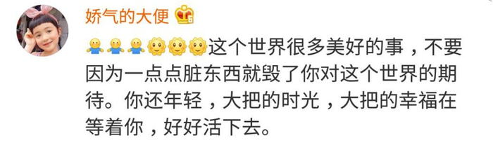 还有大量网友在网上给轻生女孩留言:“你看,这世上还有那么多好吃的等着你呢!”
