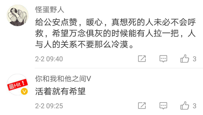 网友看到这个消息,纷纷点赞公安!同时也提醒大家:看到有人万念俱灰的时候,都能拉一把......