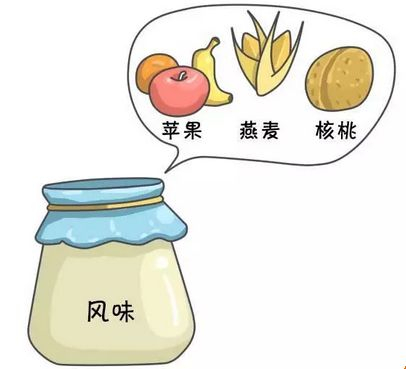 简单来说,看到风味两个字,就表示这罐酸奶里,添了别的东西。有将近五分之一的位置都腾给了水果、谷物,以及各种增加营养、改善口味质地的添加剂。