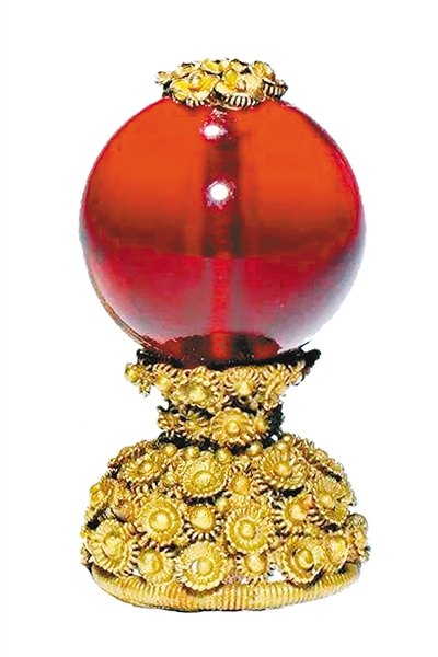 清礼规定,一品顶戴应嵌红宝石,并配黄金底座。