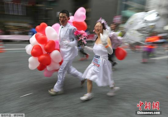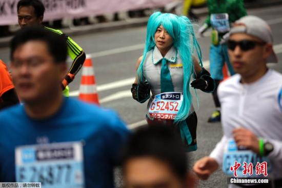 资料图片:当地时间2014年2月23日,日本东京举行马拉松赛,35000名选手参赛,其中不乏造型奇葩的扮相。