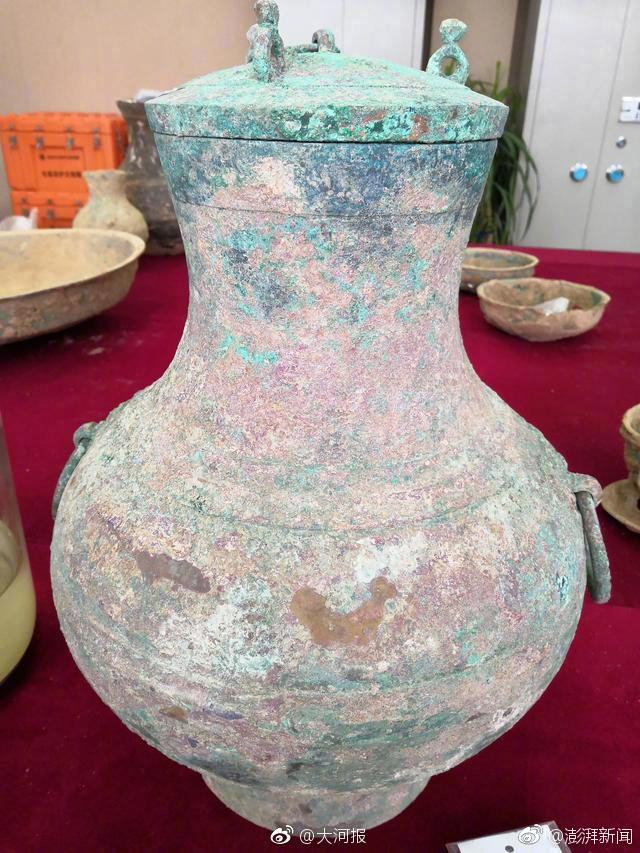 去年9月,洛阳纱厂西路发掘一座西汉空心砖券大墓,出土了彩绘陶壶、大雁铜灯、“暖手炉”、青铜壶等文物,其中一个青铜壶内盛有约3500毫升的液体,据考古人员初期判断是美酒,引发社会各界高度关注。