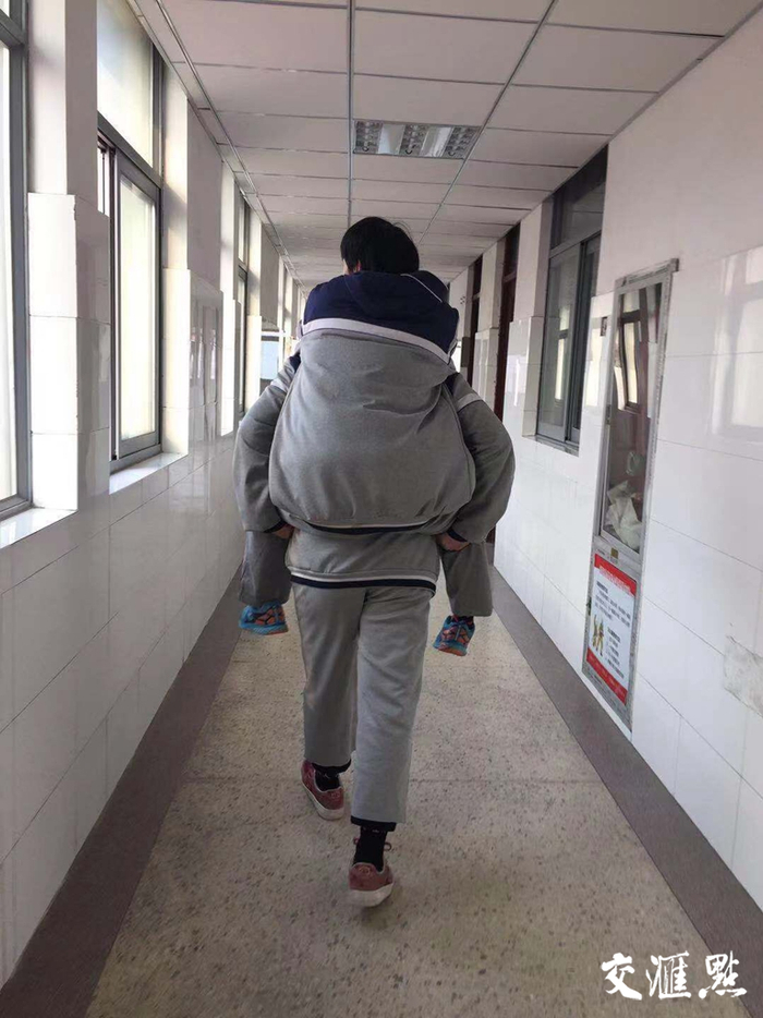 “晚自习结束后,我就背潘志豪回宿舍。”同学侍东洋说,“刚背上他时还可以,走到一半就感到吃力,但我必须咬牙坚持下去。”自去年9月份开学以来,除了道路湿滑不安全的雨雪天,侍东洋一天也没有缺岗。