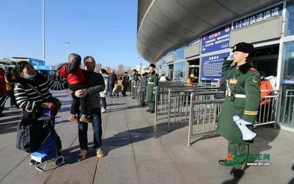 2017年春运期间,执勤哨兵武孟杰在北京西站执勤,恰逢父母来北京办事,为了看一眼儿子
