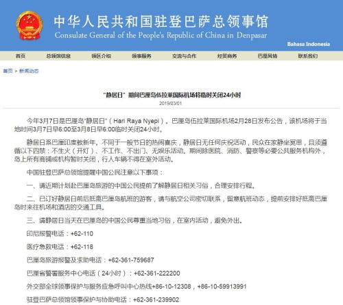 图片来源:中国驻印尼登巴萨总领馆网站截图