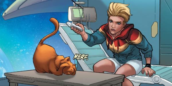 漫画中,惊奇队长卡罗尔和她的宠物猫Chewie