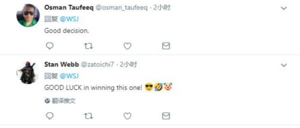 与此同时,群众的眼睛是雪亮的。在《华尔街日报》等媒体推送“华为反击”的报道后,有网友留言称赞华为“做出了正确的决定”、“祝华为打赢官司”。
