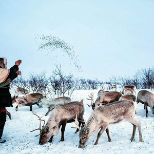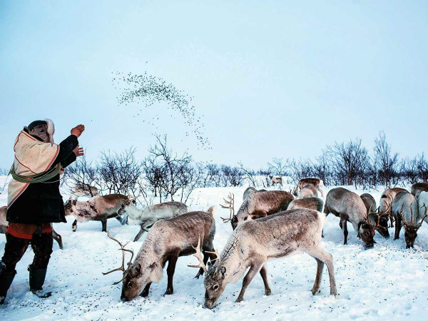 图说:由于北极圈气候变化,萨米人不得不开始用人工投喂的方式饲养驯鹿。GJ