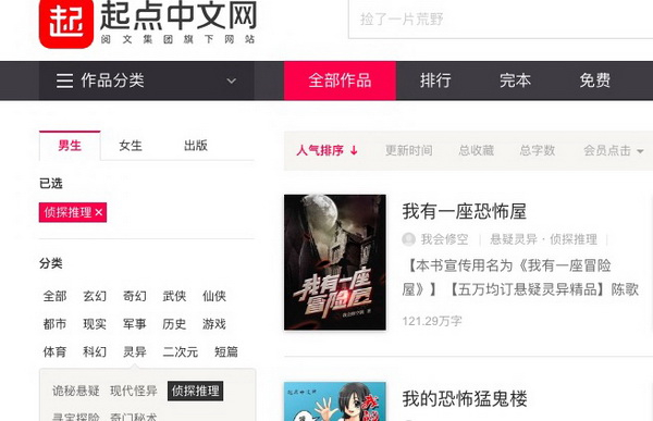 在起点中文网,《我有一座冒险屋》是眼下悬疑推理类作品的人气第一。该小说上线半年后,仅在起点中文网就收获超过9000万的点击、数十万条评论、100多万名粉丝,一举打破起点中文网13年来新人月票记录。