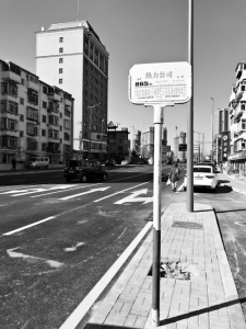 山西晚报记者看到,这个站牌是老式的铁杆站牌,路南、路北各立着一个。两个站牌两面都贴着自制站牌:红色的“热力公司”站名,下面是865路公交线路图。样式跟正式站牌很像,只是线路图下多了行小字:公交迷公益制作,请您注意保护。