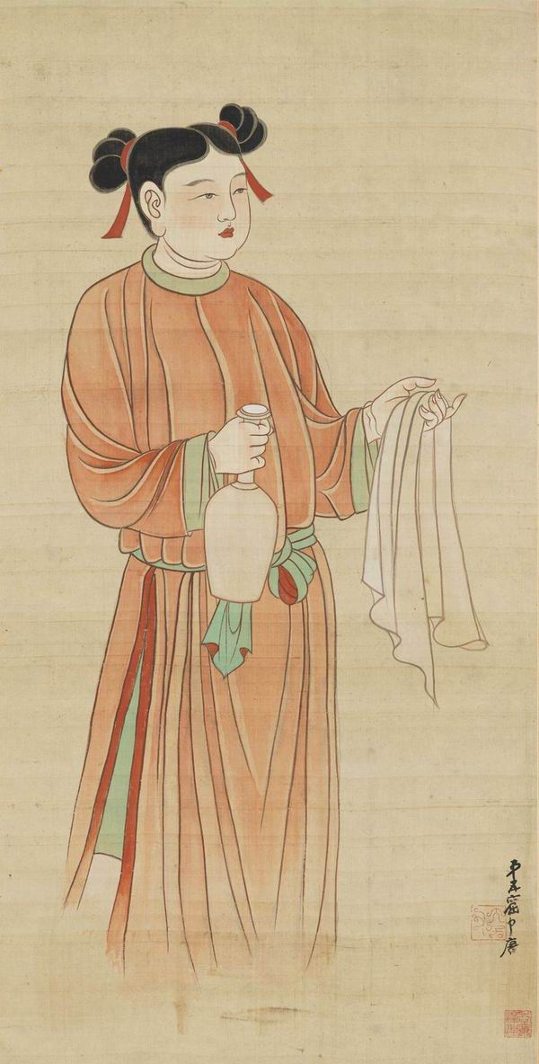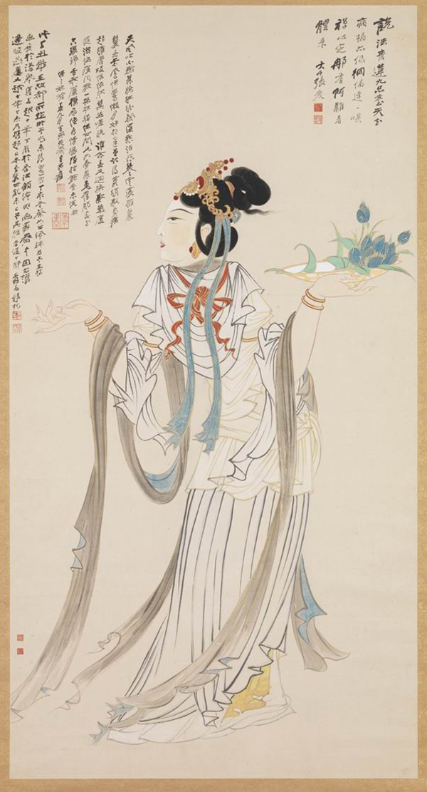 《张大千摹敦煌莫高窟第一三八窟近事女》