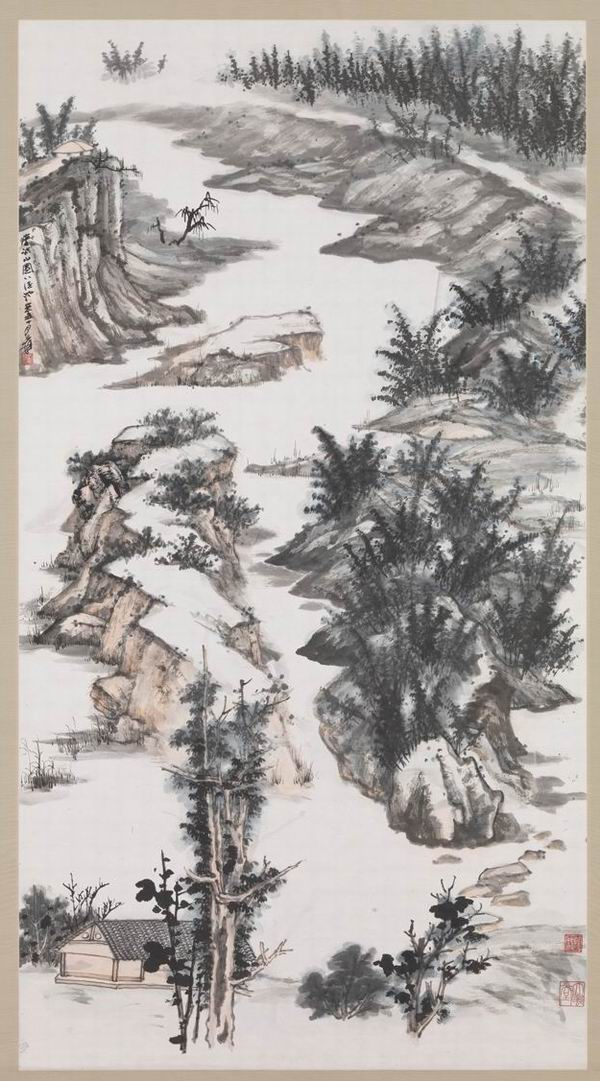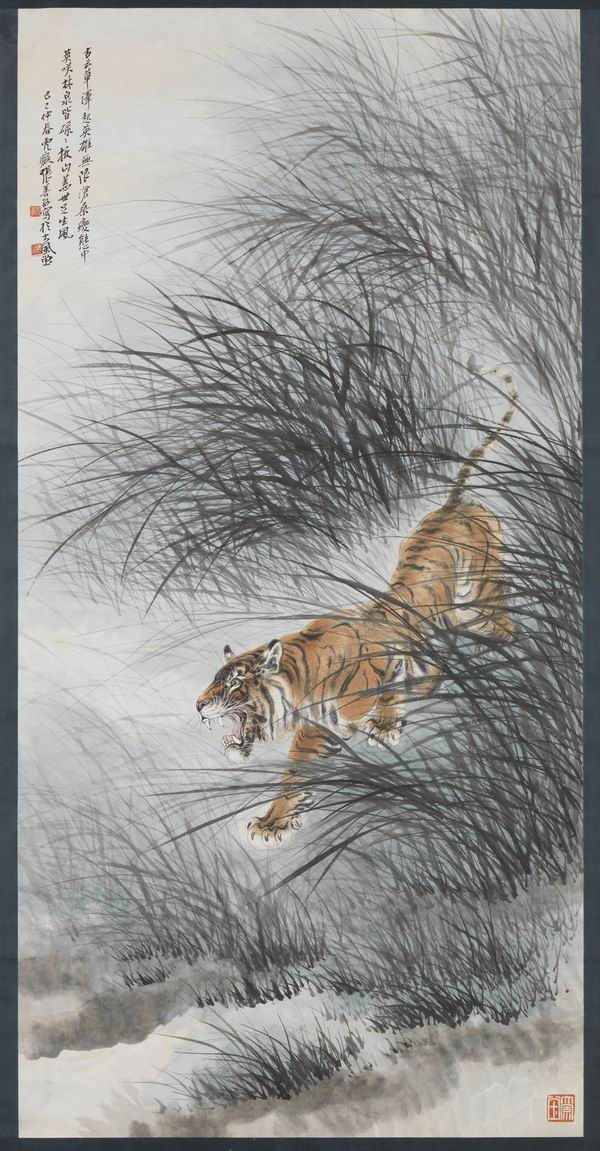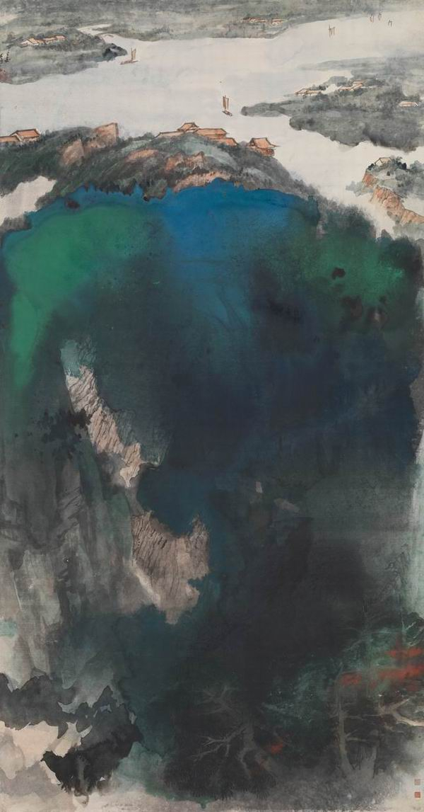 1949年后,张大千旅居海外, 1965年开始在中国台湾定居,并终老于摩耶精舍。其晚年发展出气势撼人的泼墨泼彩画风,开拓水墨新境界,成为标志性的代表。这些在“大千巨作”等都有所呈现。“大千巨作”部分将展出《张大千墨荷四联屏》、《张大千阔浦遥山》等。