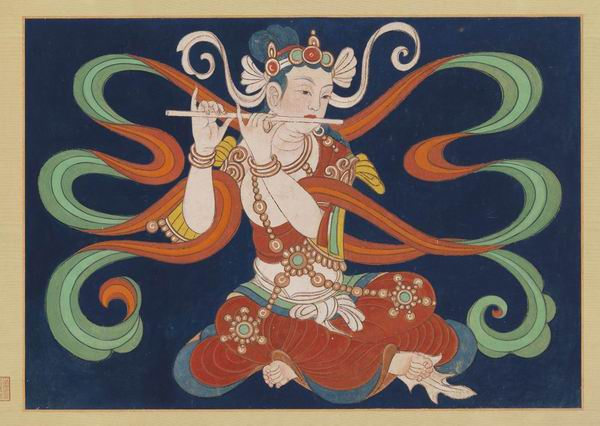 《张大千摹敦煌莫高窟第三二七窟宋代伎乐》