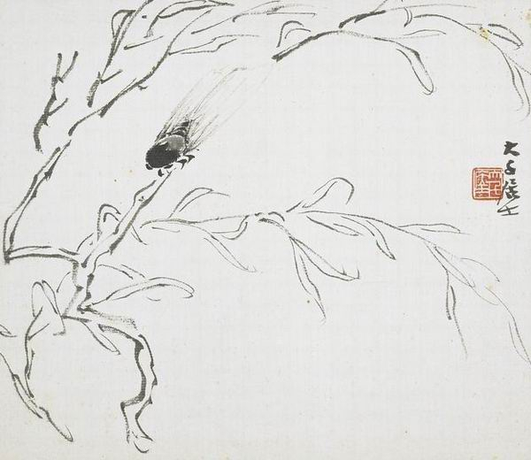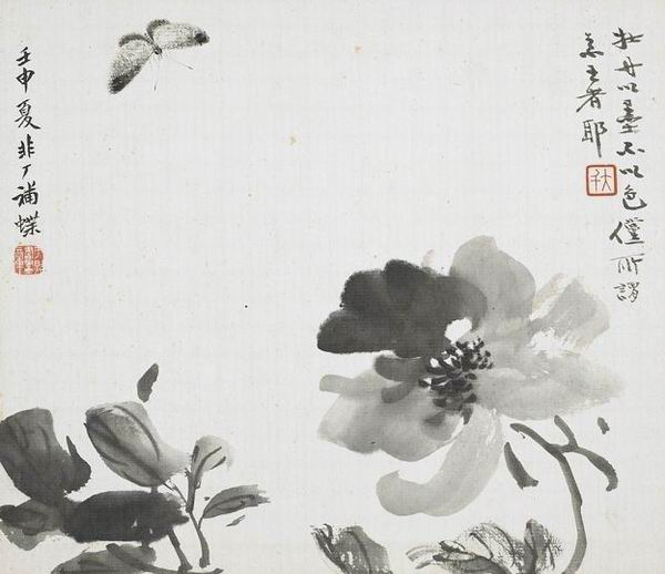 《张大千于非闇花卉草虫册 仿八大山人鱼乐图》