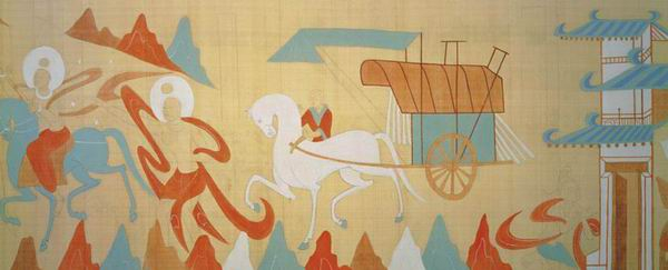 《张大千摹敦煌莫高窟第二五七窟北魏鹿王本生》(局部)
