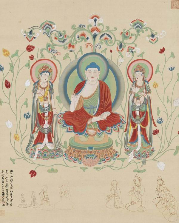 《张大千张心德摹敦煌西千佛洞第十一窟释迦说法图》