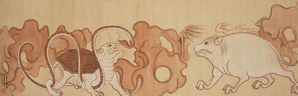 《张大千摹敦煌莫高窟第二四九窟野猪与玄武》