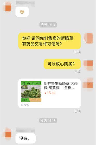 然而,有购买者问了几个售卖“断肠草”的卖家,均回答没有办证。