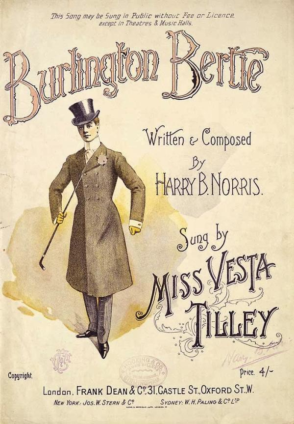 Vesta Tilley出演Burlington Bertie的演出海报,图片来源:维基百科