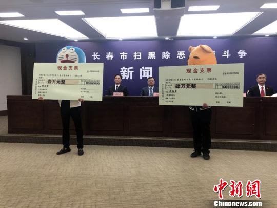 在发布会现场,长春市扫黑办为提供线索的两名群众分别颁发了1万元和4万元的奖金。