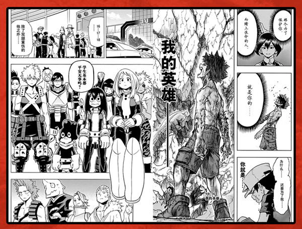 堀越在这部漫画里致敬了众多美漫,不仅从DC和漫威借鉴了很多人设,分镜和叙事手法,连团队作战、支援、英雄和反英雄体系都一并拿过来,但显然没有融合好。这是因为堀越自始至终没发展出任何深度的思考和完整的体系。《我的英雄学院》的故事里有很多可以展开来讲的点,比如英雄事务所是如何运作的,它们是如何被管理的,英雄的排名机制应该如何运作,英雄是否应该匿名……堀越在漫画一开始就抛出这么一句话——人生而不平等,但至今二百多话过去,他一个字也没在这句话上下过功夫,人与人的不平等是先天还是后天造成的?不平等导致的奴役和歧视是正当的吗?人类社会应该坚持公平正义还是实力至上?不平等能够通过个人能动性的努力来填平吗?很多能够引出这些问题的桥段,都被堀越轻轻一笔带过,《我的英雄学院》虽然是架空作品,但架空到200多话过去,读者对整个英雄社会几乎一无所知,就实在有点草率了。这只能理解为堀越从来没想,也的确没有进行过这样的系统性思考,他借鉴来的种种元素都无法很好地统合在一个框架下,所以才会像现在这样引发诸多恶评。