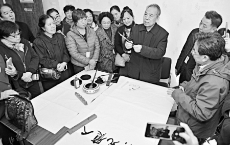 山西晚报讯(记者 郭志英)3月14日,山西省老年大学万柏林区西岸社区授课点邀请著名书法家赵望进先生,为书法研修班学员进行了一场精彩的书法讲座。教室内座无虚席,50多名学员专心致志地听课、记笔记。