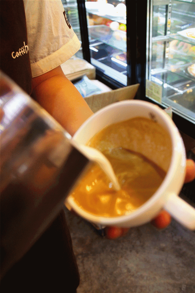 360°的开放式吧台,磨豆,压粉,萃取咖啡,制作奶泡,拉花....一杯咖啡的制作需要整整九道工序,每一个微小的细节组成了一杯香浓四溢的coffee,让每一个品尝咖啡的人在一念之间感受到整个世界。
