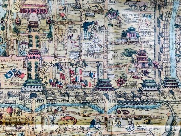 1936年有个驻华美国军官弗兰克·多恩(Frank Dorn)出版了一张《北平历史地图》(A Map and History of Peiping),生动描绘了当时的地标和风俗,非常好玩。鉴于帕梅拉是1937年1月被杀,这张地图应该也是比较忠实地展现了她所处的环境,以下地图局部就是本案相关地域范围。
