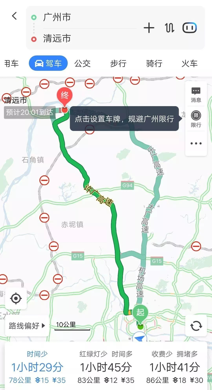 从广州东站到清远城区