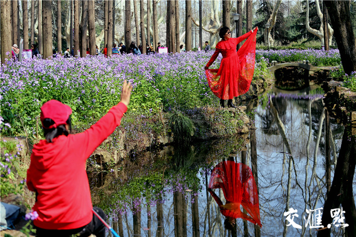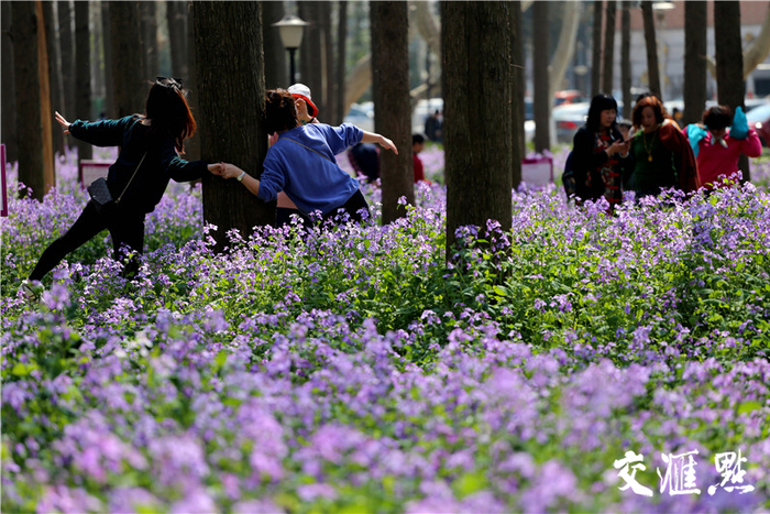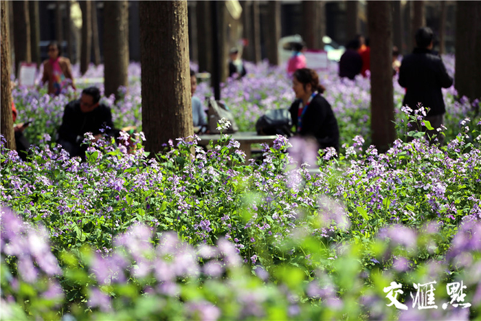 眼下,水杉树已经开始发出嫩嫩的绿芽,水杉林周围的桃花、梅花、樱花绽放也为眼前的二月兰增色不少。史进步告诉交汇点记者:“下周来看二月兰,会更漂亮。”