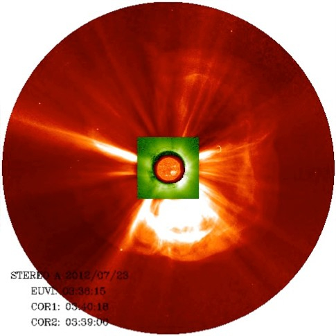 图1:STEREO卫星观测到的2012年7月23日爆发(左)与2017年7月23日爆发(右)。