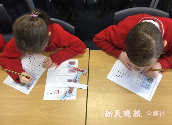 给孩子们带来全新数学学习体验的老师,来自他们在地图上标注了很久的地方——中国,上海。从2014年起,上海市教委、英国教育部分别通过上海师范大学和英国国家卓越数学教学中心代表共同启动了一项中英数学教师交流项目,截至目前,中英双方分别在此框架下共计互派中小学教师约548人次。全英16000所小学中,有超过5000所英开始用“上海掌握数学模式(Shanghai Mastery Model for Teaching and Learning ”教数学,而到明年,这一数字有望扩展到8000所。日前,记者跟随参与第三轮交流的86名上海中小学数学教师,一同走入英国课堂,观察上海老师带来的魔力课堂。