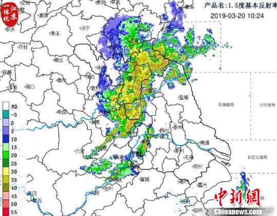 图为长三角大部迎来强对流天气。江苏气象 供图