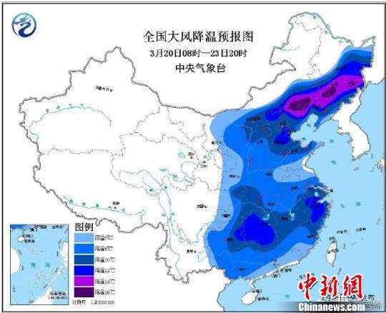 图为全国大风降温预报图。江苏气象 供图