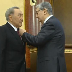 据哈萨克斯坦国际通讯社报道,托卡耶夫20日给卸任的纳扎尔巴耶夫授予了该国首枚“金星”勋章以及“人民英雄”的称号,以表彰后者为独立哈萨克斯坦的建立、经济和社会发展作出的伟大贡献。