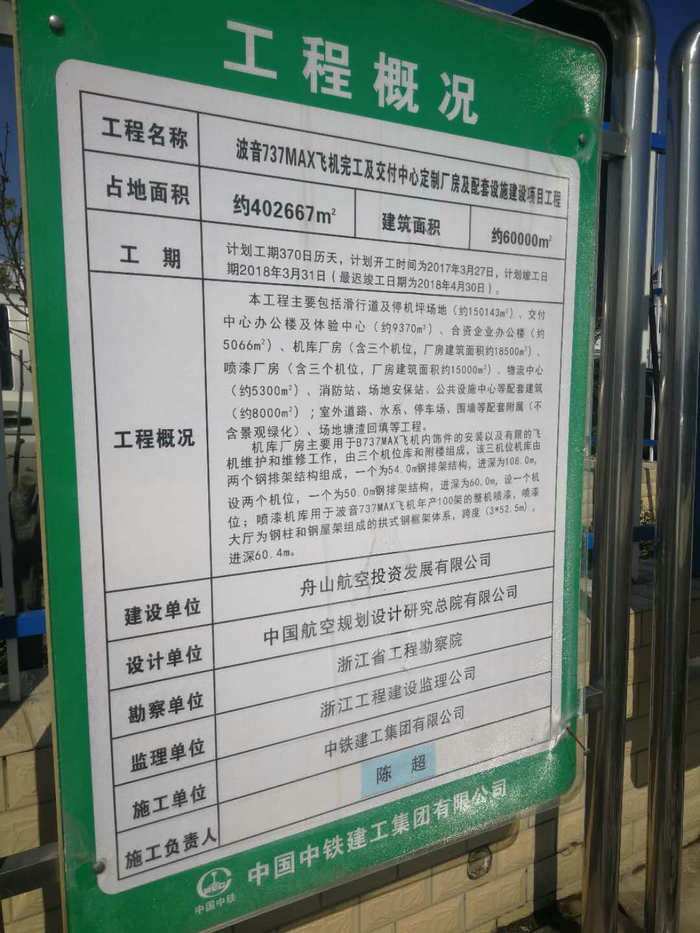 然而项目至今还未完工。“因为没有全套的图纸,我们是边设计边施工,同时该项目又不同于普通建筑和住宅,很多设备和材料都具有较强的专业性和特殊要求。因此,只能一个一个节点推进,一道一道工序突破,保证施工进度和精度。”中铁建工波音737MAX完工与交付中心项目经理许浩在接受舟山广播电视台记者采访时称。