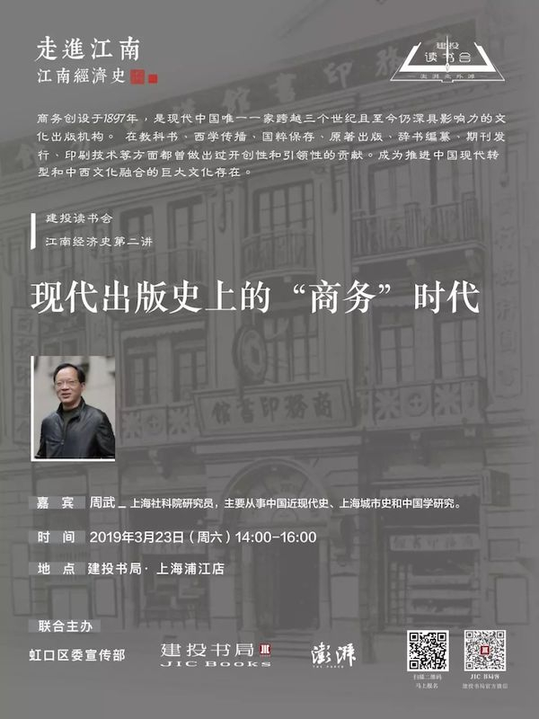 现代中国狂飙突进,大浪淘沙,商务印书馆是如何脱颖而出的?它经历了怎样的创业历程,又为中国文化的积累、承传与现代转型做出过哪些具体贡献?3月23日,建投书局有幸邀请到上海社会科学院周武研究员,他将从商务印书馆的发展历程讲起,带我们深入了解大浪淘沙时代下它如何开辟出中国出版史上崭新的“商务”时代。